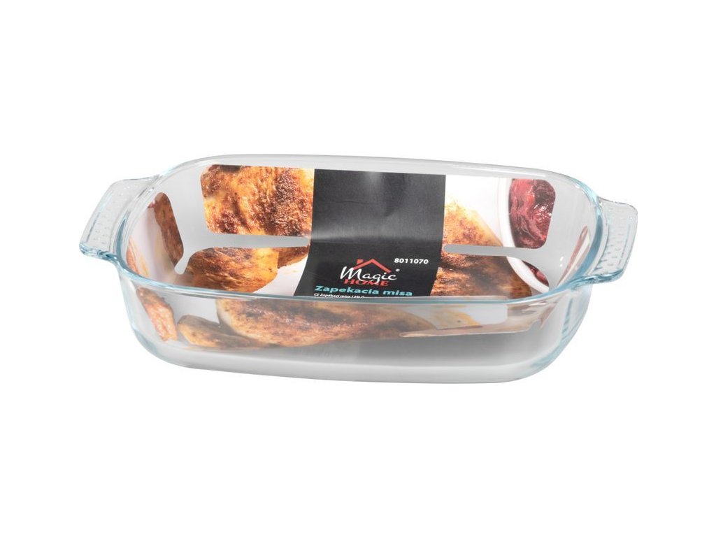 Skleněná zapékací mísa MagicHome o objemu 2000 ml je ideální pro přípravu, zapékání a servírování pokrmů. Je vyrobena z odolného skla, které je vhodné pro použití v troubě, mikrovlnce i pro skladování v chladničce.
