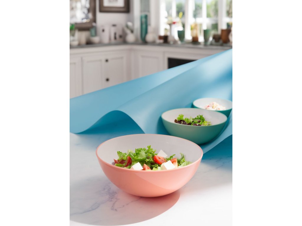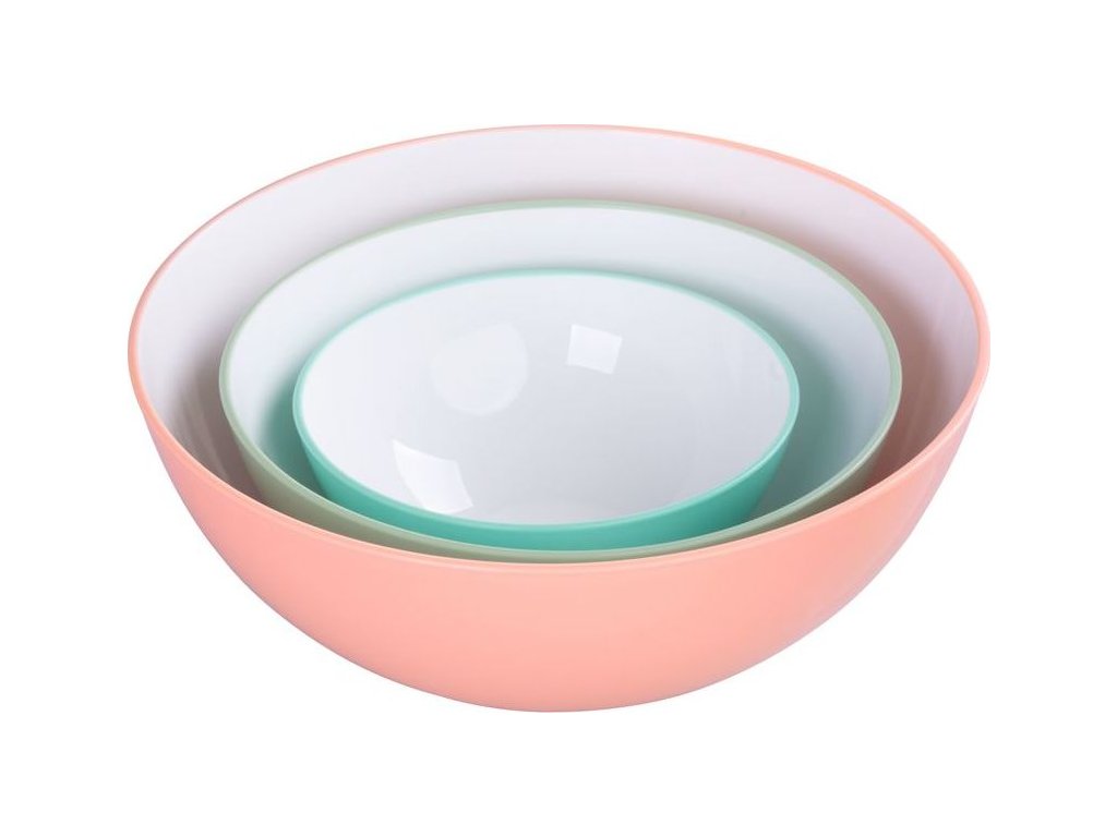 Sada plastových salátových misek MagicHome v decentních pudrových barvách obsahuje 3 různé misky o objemu 0,6/1,5/3 litrů.