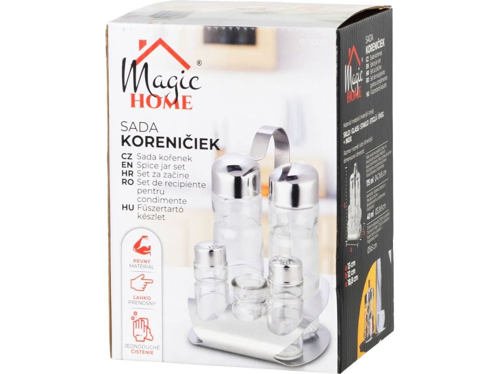 Sada kořenek MagicHome je dokonalým řešením pro přehledné a stylové skladování ochucovadel a koření. Sada obsahuje elegantní stojan z nerezové oceli a praktické skleněné nádoby , které kombinují funkčnost s moderním designem.
