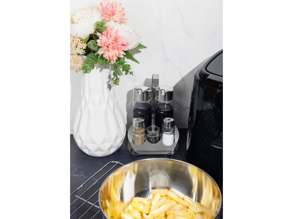 - Moderní design se snadným přístupem ke pepřenkám a ochucovadlům.