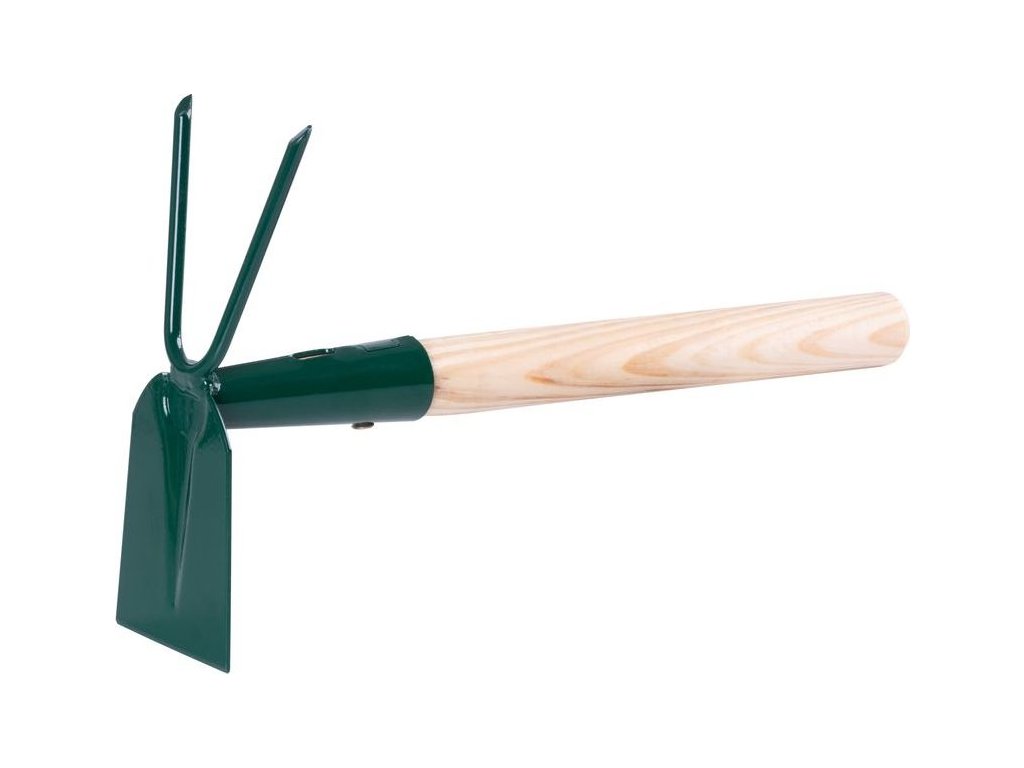 Kvalitní motyčka plochá - dvouzubá s násadou na odplevelování záhonů a provzdušnění půdy. Spolehlivý pomocník do zahrad.