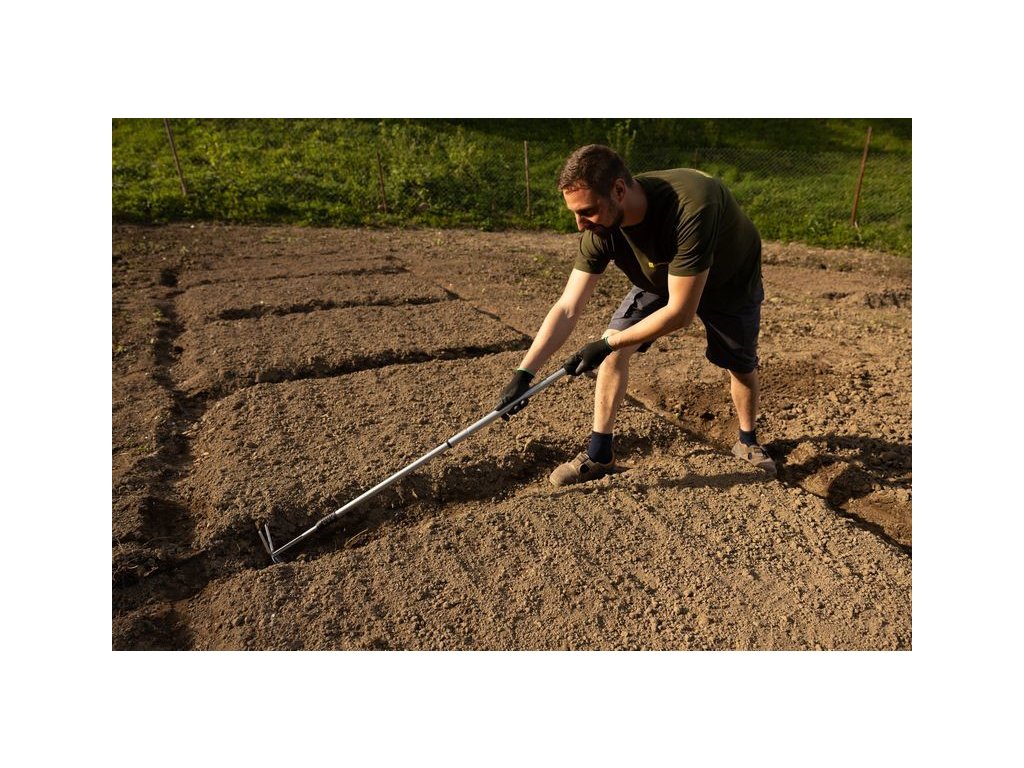Zahradní motyčka je vyroben z oceli.