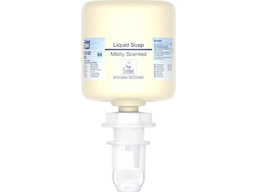 Tork jemně parfémované tekuté mýdlo,svěží vůně, obsahuje hydratační a vyživující přísady pro šetrné mytí rukou. Nyní nově o obsahu 525ml. Určeno pro dávkovače Tork S5.