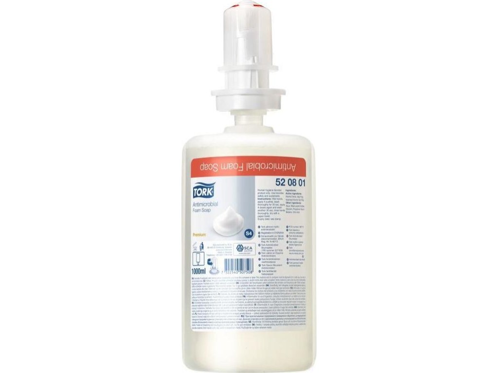 Obsahuje glycerol a betain pro dokonalou starostlivost o kůži všude tam, kde jsou ruce často myté. Jedinečná formula s povrchově aktivními složkami v kombinaci s nižší koncentraci etanolu činí méně emisí těkavých organických sloučenin (VOC). Účinný proti bakteriím, kvasinkám, plísním a proti virům. Minimalizuje riziko alergických reakcí. Tork pěnové mýdlo je ideální pro použití na toaletách kde je vysoká frekvence návštěvníků, díky své vysoké kapacitě je velmi ekonomické 1litr = 1667 dávek.