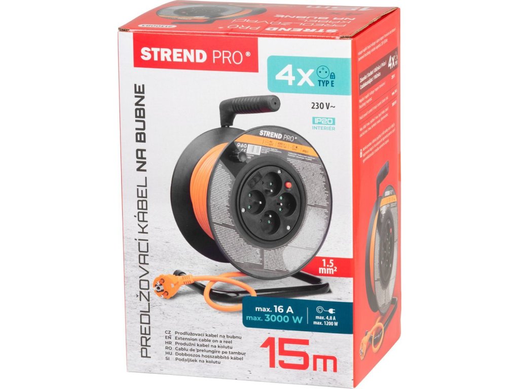 Kabel Strend Pro DG-FB04 prodlužovací, L-15 m, na bubnu, průřez 1,5 mm2