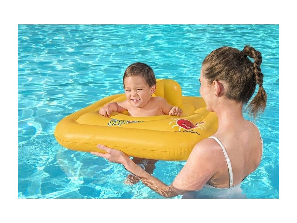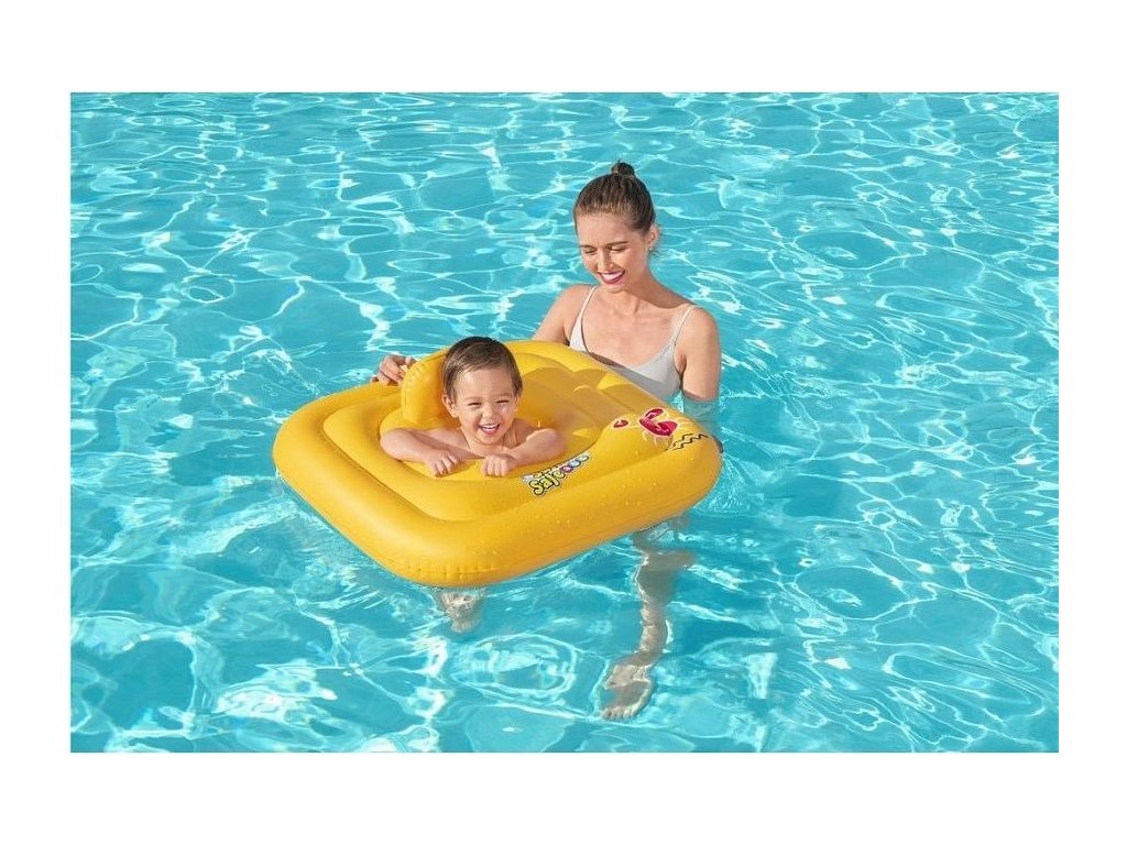 Nafukovací kruh, v tomto případě spíše čtverec vzhledem k jeho tvaru, poskytne děťátku rovnováhu. Pomůcku do vody totiž tvoří 3 vzduchové komory pro větší stabilitu na hladině. Sedátko uprostřed tvoří dva otvory pro nohy, aby jimi mohlo dítě kopat ve vodě a sedělo bezpečně. Kruh získáte v jasně žluté barvě s logem Bestway Swim Safe.