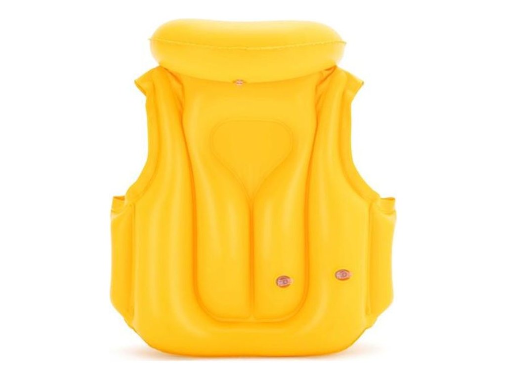Dětská nafukovací vesta udrží vaše děti v bezpečí nad vodou. Díky jemné vnitřní podšívce mohou děti nosit tuto vestu celý den bez podráždění. Límec vesty se postará o podporu krku a zvýšení pohodlí. Nastavitelné přezky a řemínek navíc umožňují, aby byla vesta ideální pro vaše dítě. Tato vesta měří 51 cm x 46 cm, což z ní činí ideální velikost pro děti od 3 do 6 let s hmotností od 18 do 30 Kg.