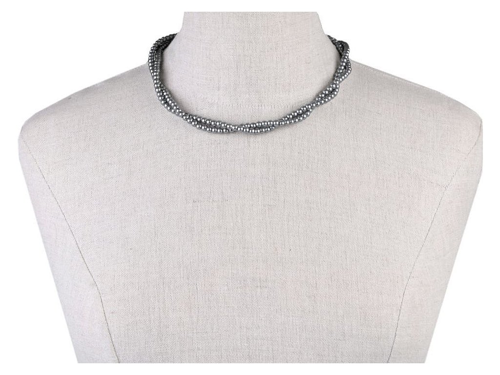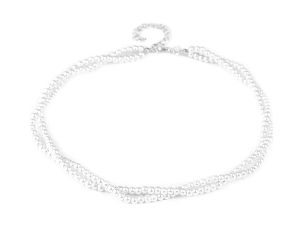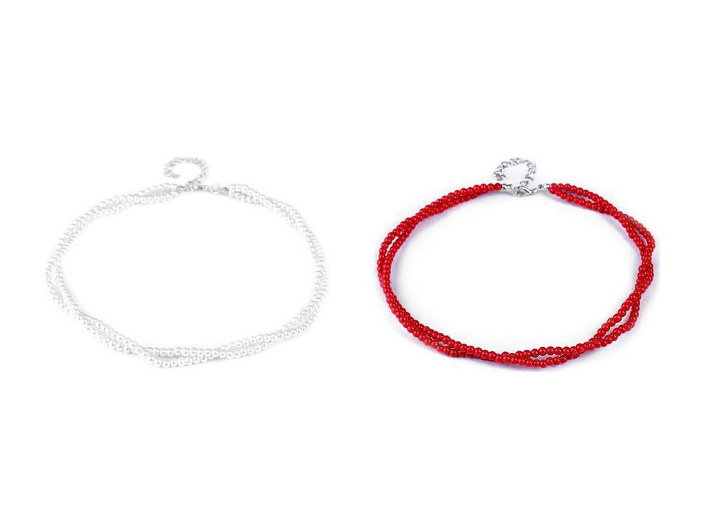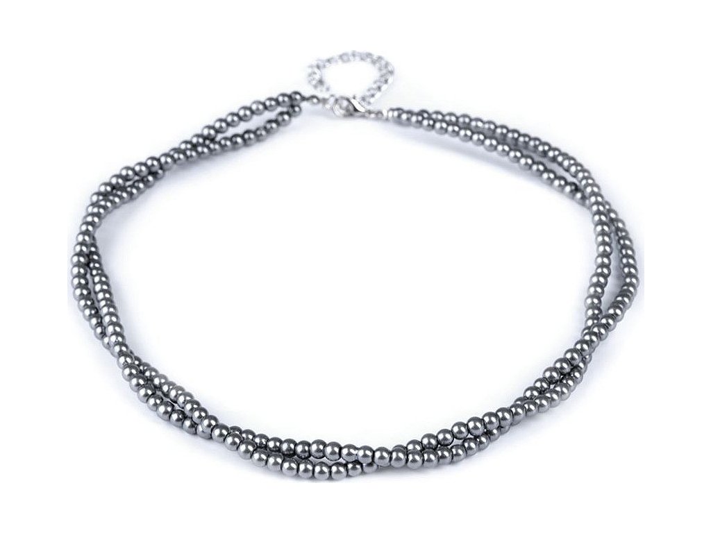 Jemný perlový náhrdelník potěší každou ženu. Je dárkem, se kterým nešlápnete vedle. Náhrdelník je spletený ze dvou pramenů. Perly mají průměr 5 mm. Hodí se ke slavnostním příležitostem, jako jsou plesy, svatby, návštěvy divadel a různé večírky. Voskové perly velice věrně napodobují perly pravé, jedná se o cenově dostupnou variantu. Náhrdelník se zapíná na karabinku a prodlužovací řetízek. Náhrdelník č. 3 a 6, červený a černý, nemá perlový lesk
