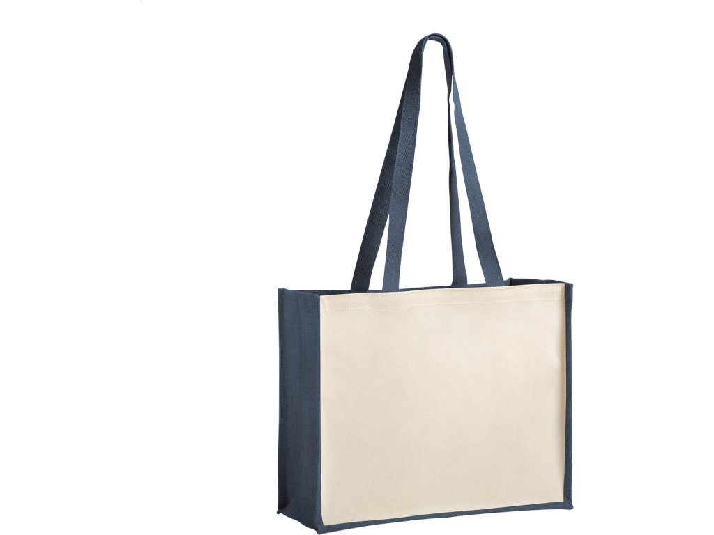 Nákupní taška v kombinaci z laminované juty a laminované bavlny s dlouhými uchy.