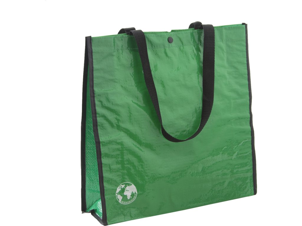 Biologicky odbouratelná nákupní taška se zapínáním na druky. PP tkaný 120 g/m².