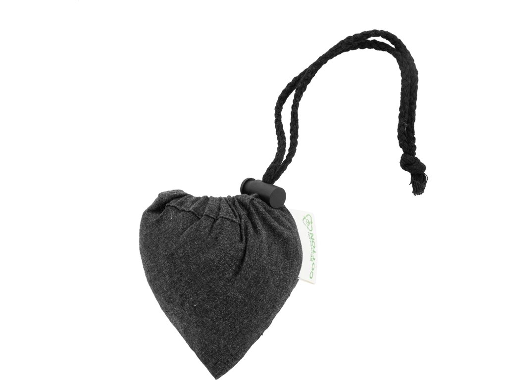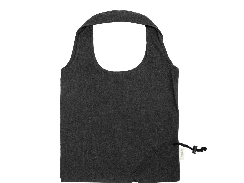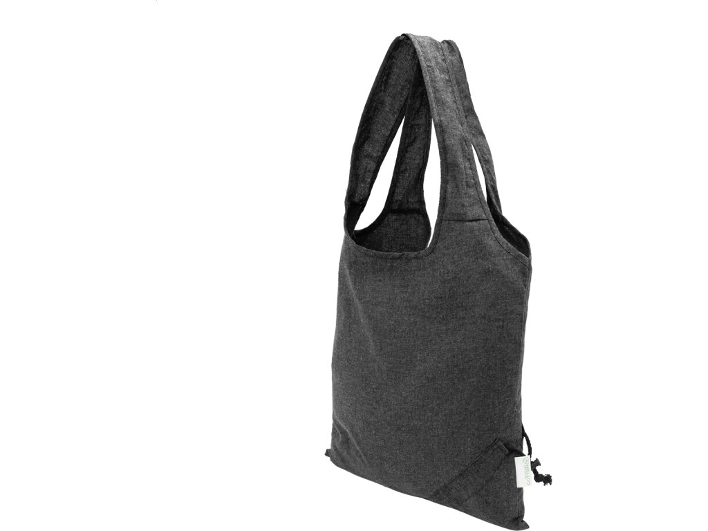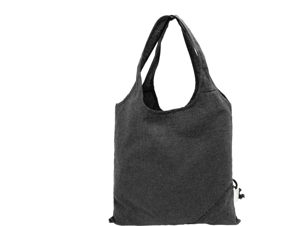 Skládací nákupní taška ze 70 % recyklované bavlny a 30 % polyesteru RPET, 140 g/m². S výrazným štítkem z recyklované bavlny.