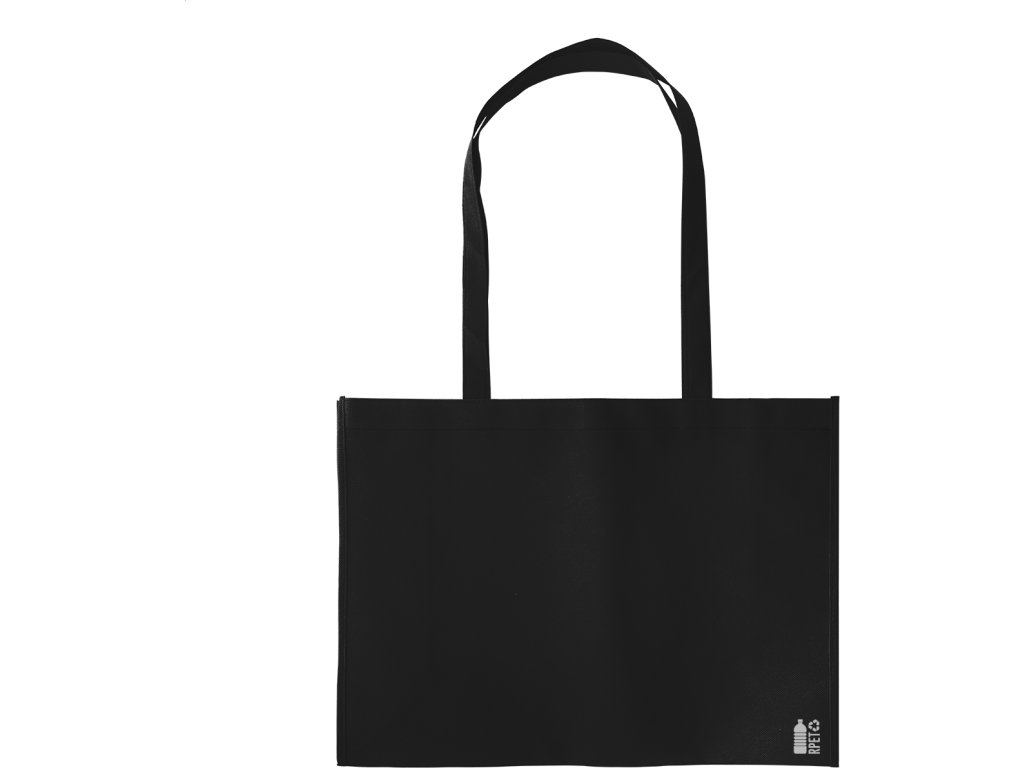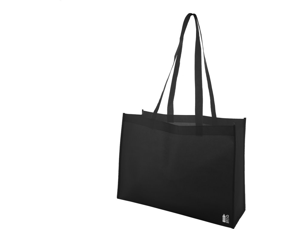 Nákupní taška z netkané textilie RPET s klínem a dlouhými uchy, 80 g/m². S výrazným logem RPET.
