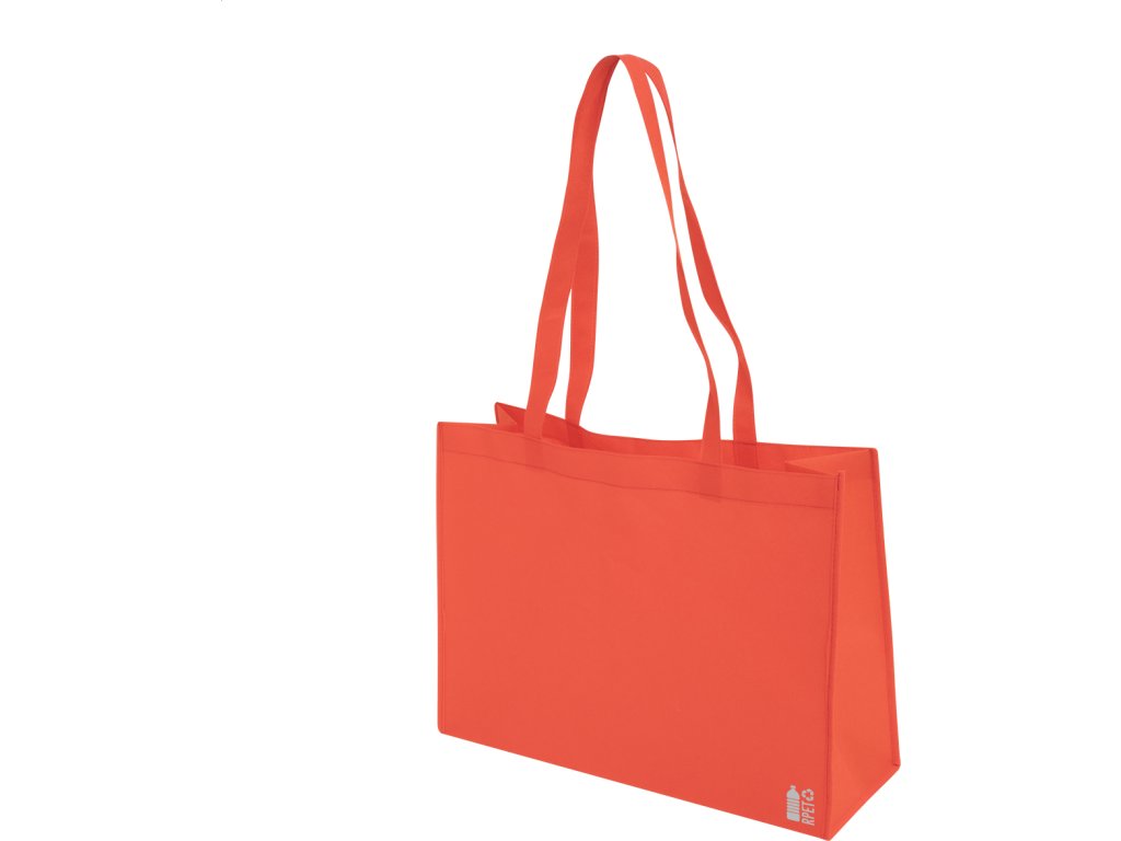 Nákupní taška z netkané textilie RPET s klínem a dlouhými uchy, 80 g/m². S výrazným logem RPET.