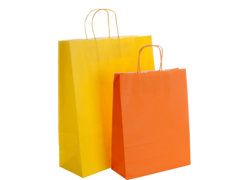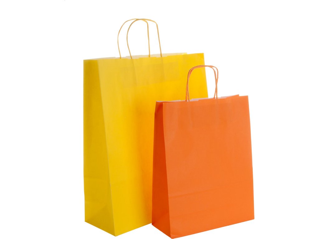 Barevná papírová taška s držadly z krouceného papíru, 100 g/m².