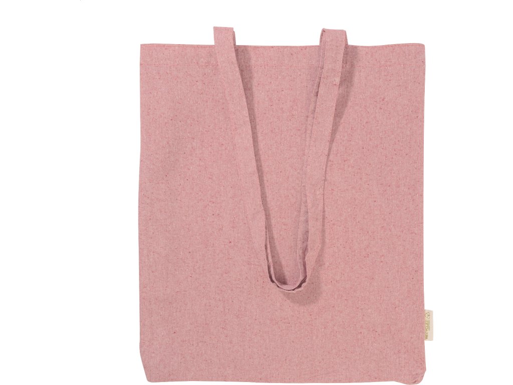 Opakovaně použitelná nákupní taška ze 100% recyklované bavlny s dlouhými uchy a výrazným štítkem z recyklované bavlny, 140 g/m².