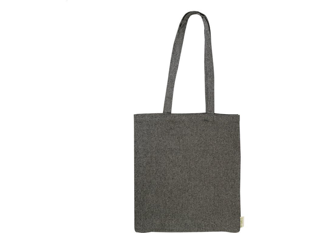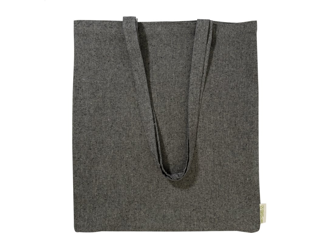 Opakovaně použitelná nákupní taška ze 100% recyklované bavlny s dlouhými uchy a výrazným štítkem z recyklované bavlny, 140 g/m².