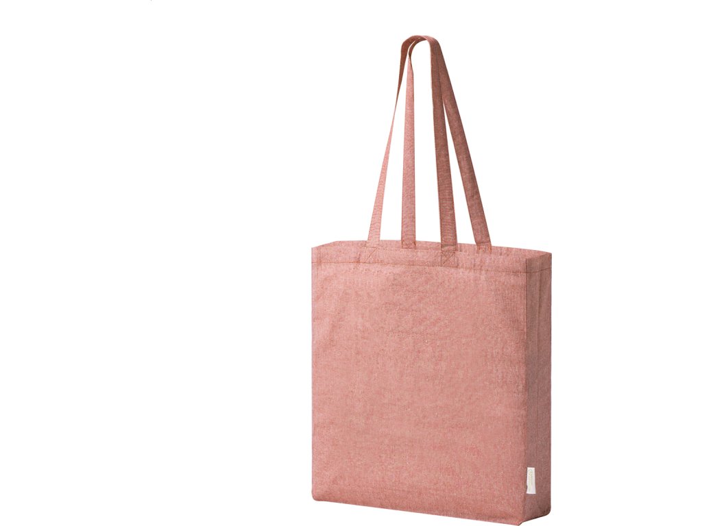Nákupní taška z recyklované bavlny s klínem, dlouhými uchy a výrazným štítkem z recyklované bavlny. 100% recyklovaná bavlna, 140 g/m².