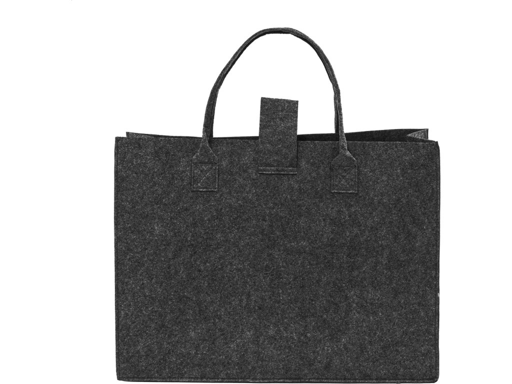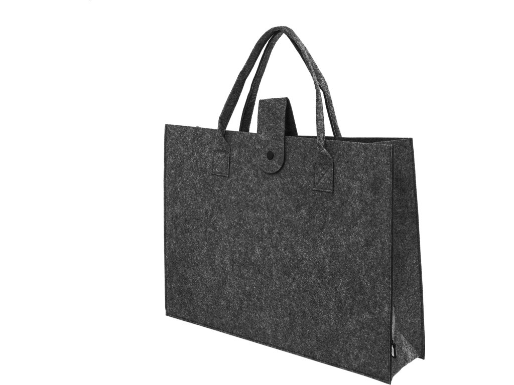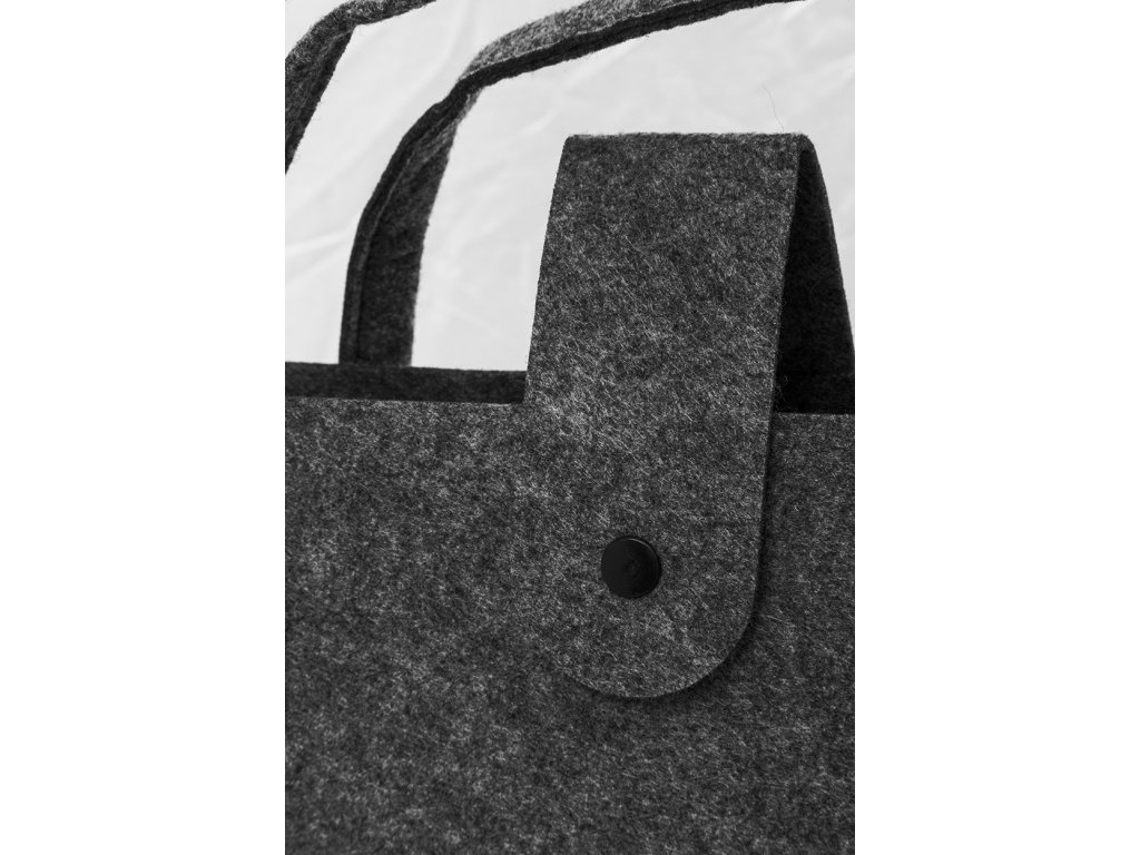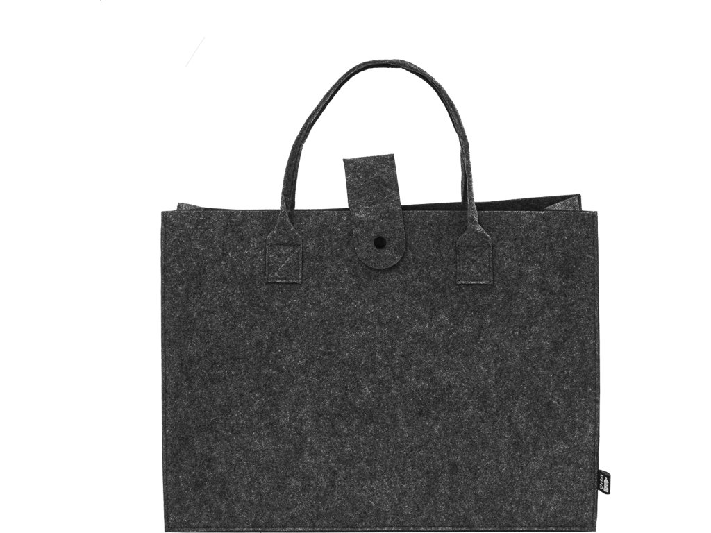 Nákupní taška z RPET plsti s klínkem, zapínáním na knoflíky a krátkými uchy. S výraznou etiketou z RPET.