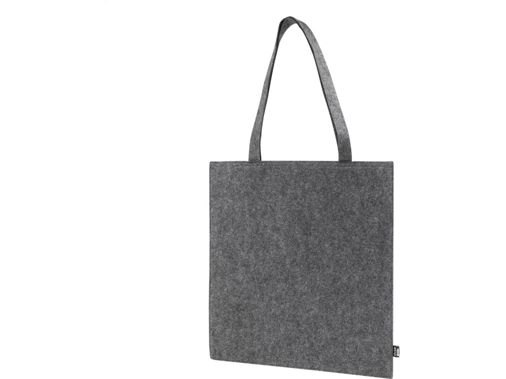 Nákupní taška z RPET plsti s dlouhými uchy. S výraznou etiketou z RPET.