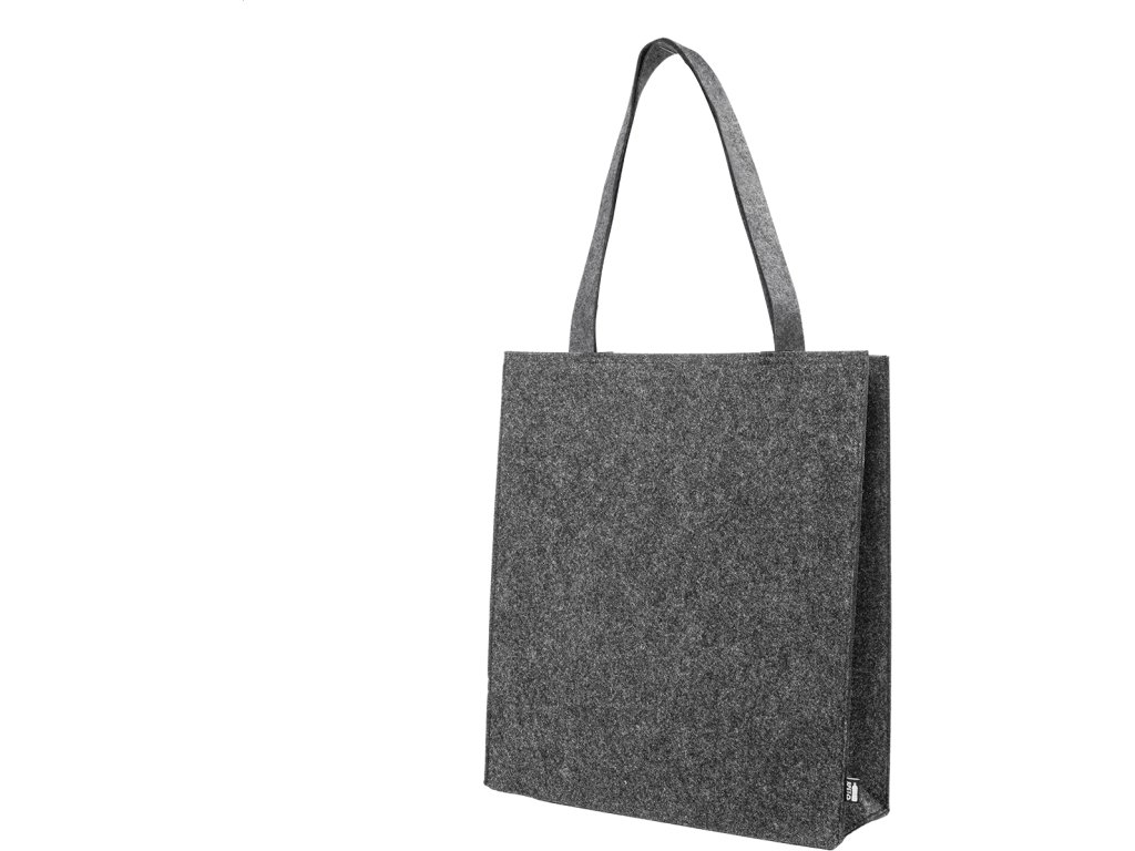 Nákupní taška z RPET plsti s klínkem a dlouhými uchy. S výraznou etiketou z RPET.