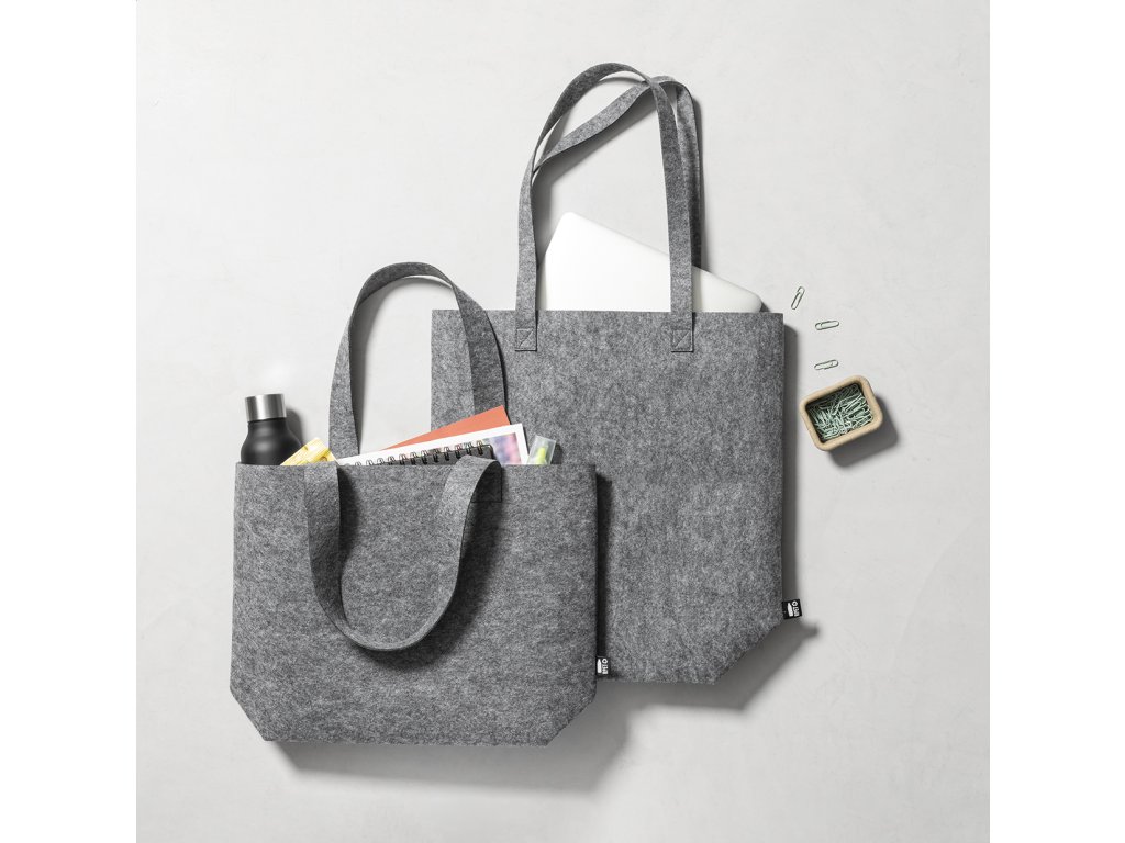 Nákupní taška z RPET plsti s extra dlouhými uchy a rozšířeným dnem. S výrazným štítkem RPET.