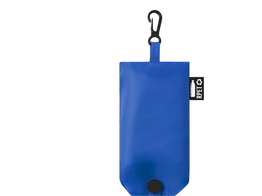 Skládací nákupní taška z RPET polyesteru, s etiketou s označením RPET.