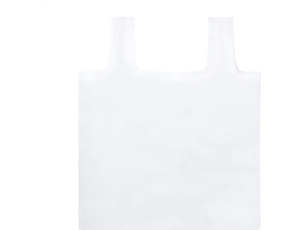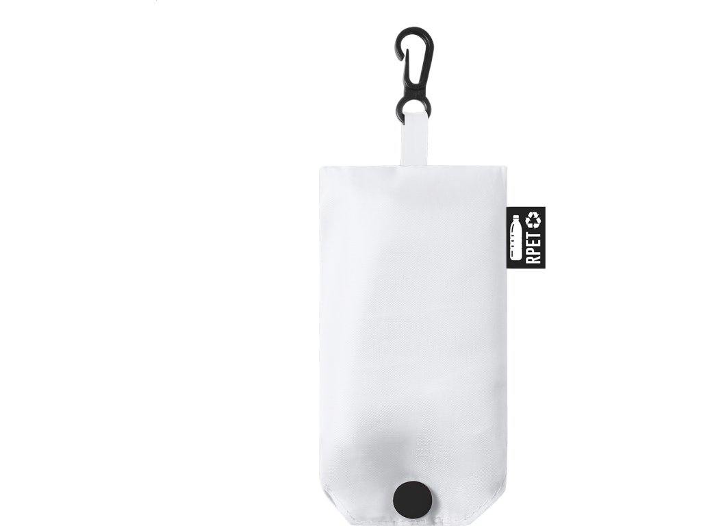 Skládací nákupní taška z RPET polyesteru, s etiketou s označením RPET.