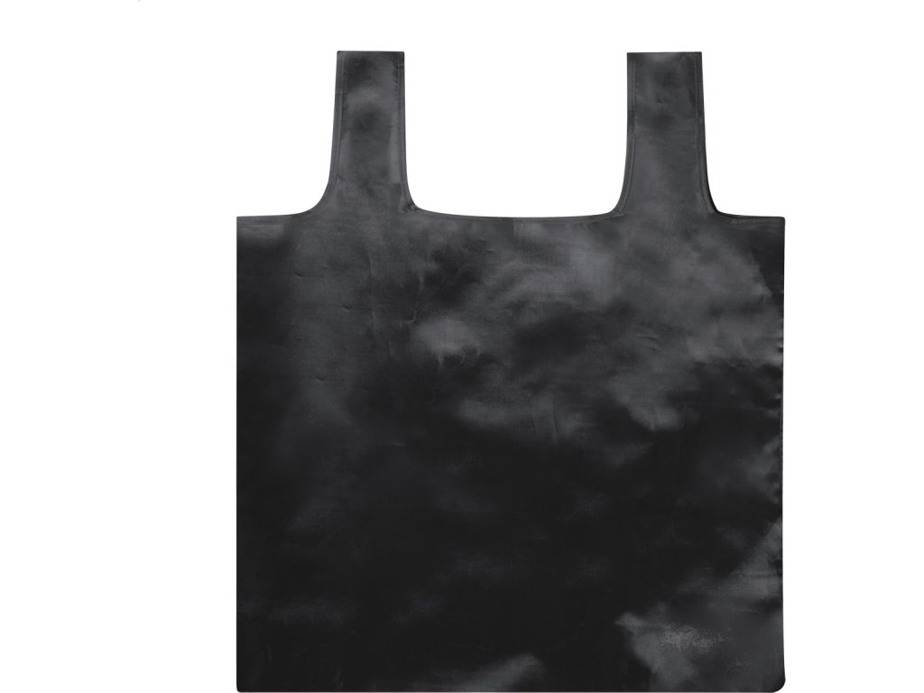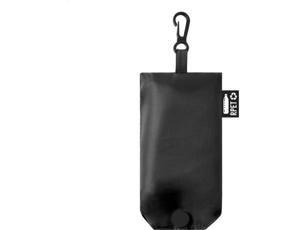 Skládací nákupní taška z RPET polyesteru, s etiketou s označením RPET.
