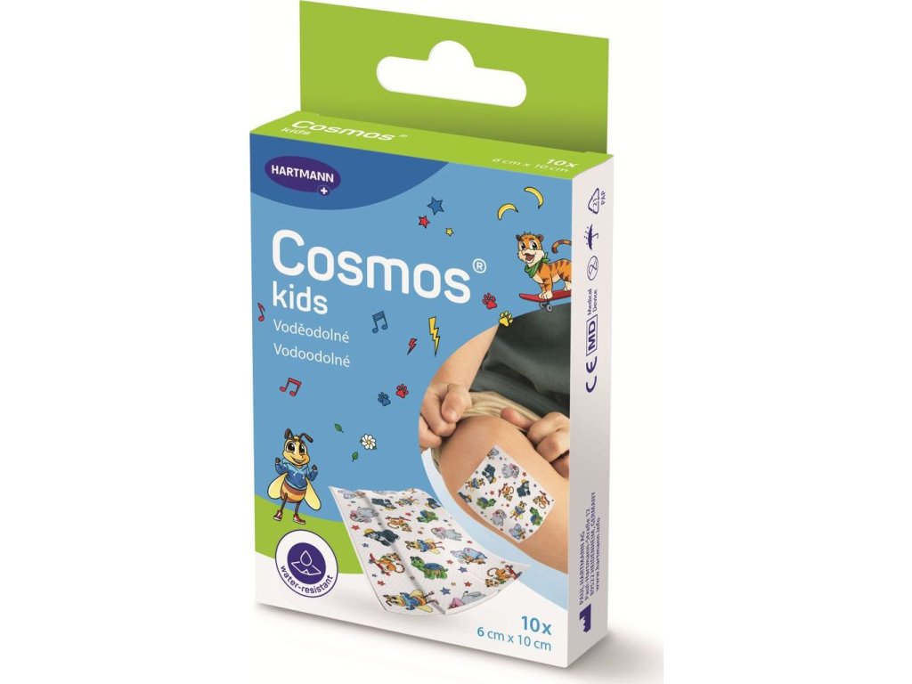 Cosmos Kids voděodolná náplast je hypoalergenní dětská náplast se zvířecími motivy, speciálně navržená pro rychlé a bezstarostné ošetření drobných poranění, škrábanců a řezů u dětí.