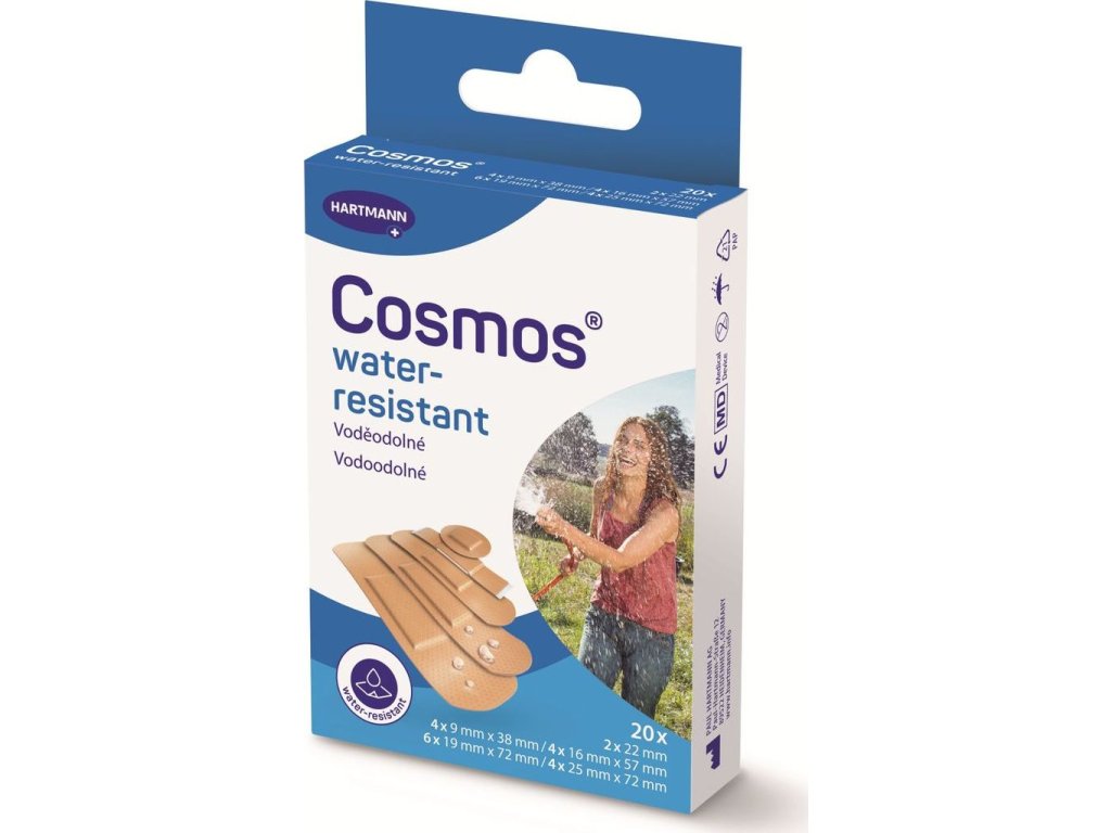 Cosmos voděodolná náplast je navržena tak, aby poskytovala spolehlivou ochranu drobným poraněním, škrábancům a řezům, i když je rána vystavena vodě. Je voděodolná a zároveň prodyšná, což zajišťuje optimální ochranu a podporuje hojení, přičemž chrání před nečistotami a vlhkostí .