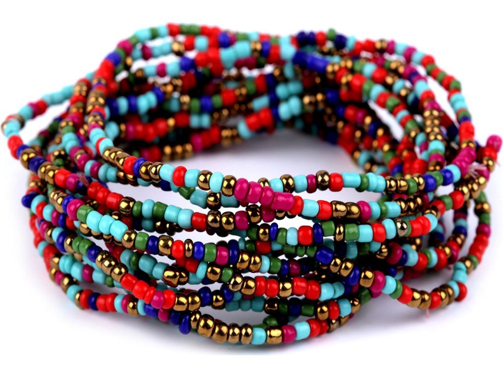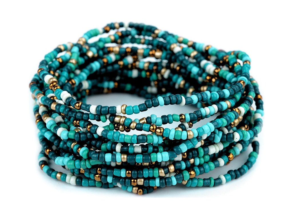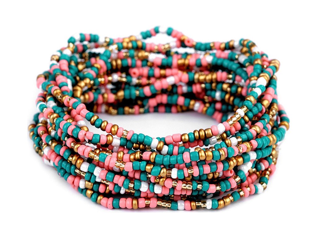 Sadu pružných rokajlových náramků můžete nosit celou najednou nebo můžete náramky rozdělit a použít je samostatně. Díky pružence se dobře navlékají na ruku. V jedné sadě je 12 náramků. Šířka celé sady je cca 3 cm.