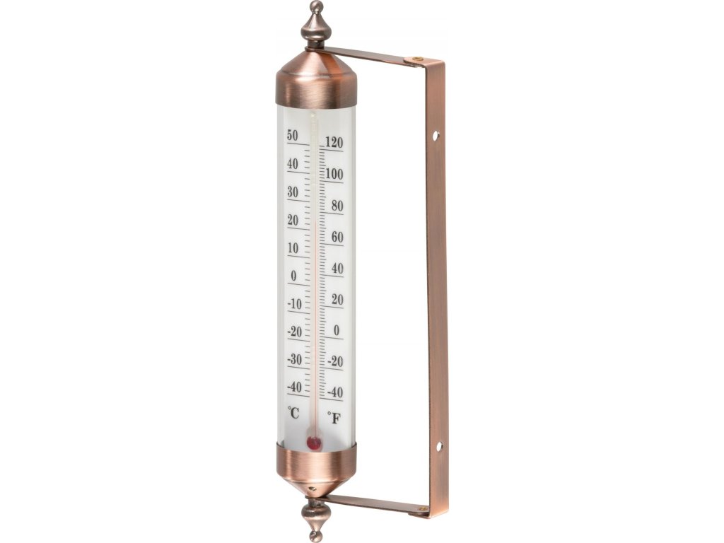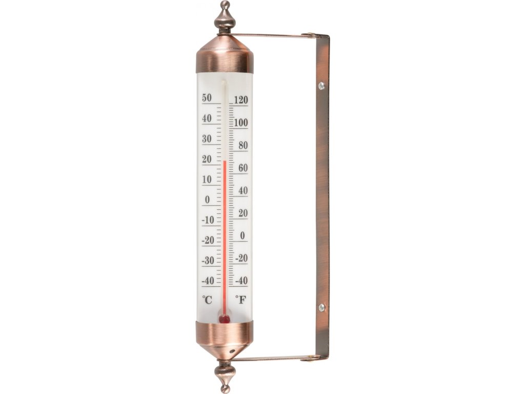Venkovní kovový teploměr měří teplotu od 50°C do -40°C.