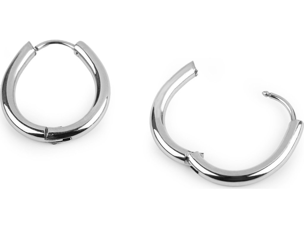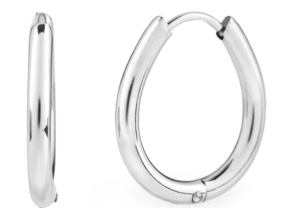 Elegantní kruhové náušnice mají moderní oválný tvar. Jsou vyrobené z kvalitní nerezové oceli. Jsou hladké, mají vysoký zrcadlový lesk. Hodí se k jakémukoliv outfitu, oblíbíte si je na každodenní nošení. Zapínají se zacvaknutím.