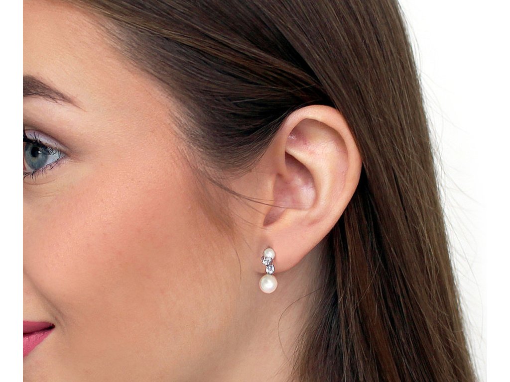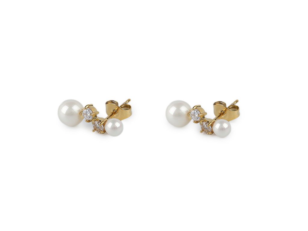 Náušnice z nerezové oceli jsou ozdobené broušenými kamínky a perlami. Jejich velikost je decentní, ale působí luxusním dojmem. Díky puzetovému zapínání je nasazování a nošení velmi pohodlné, takže je můžete mít na uších celý den.