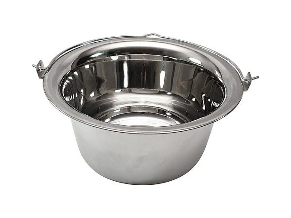 Nerezový kotlík vhodný pro přípravu jídla při táboření v přírodě, u vody nebo v domácnosti.