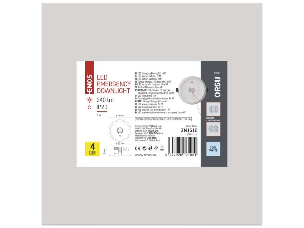 Nouzové svítidlo ORSU 3W 240lm 3h MT