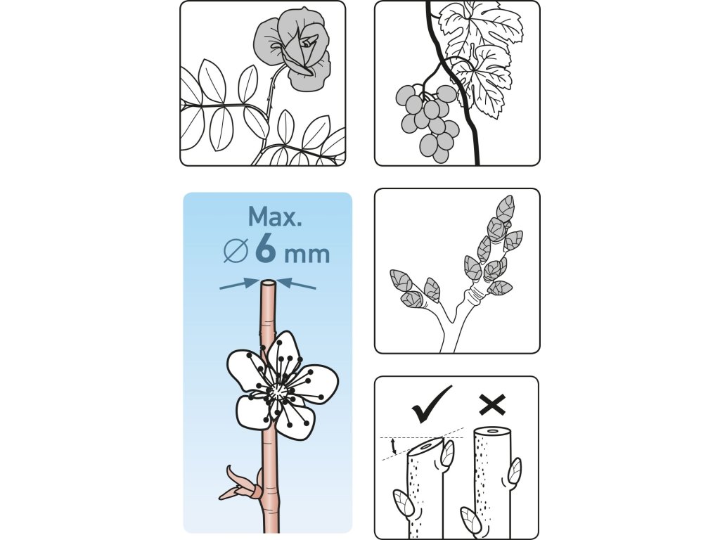 • doplňující parametr: na stříhání rostlin do průměru 6mm, pracovní délka čelistí 75mm