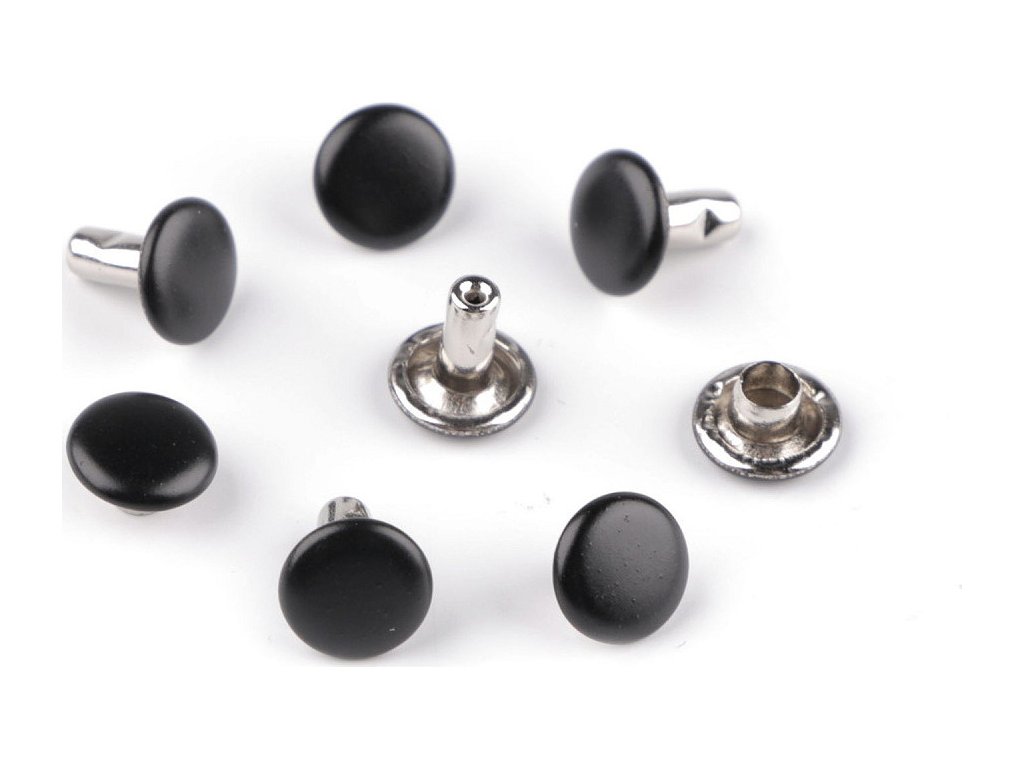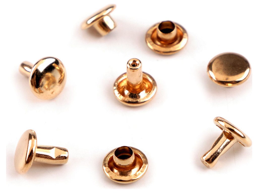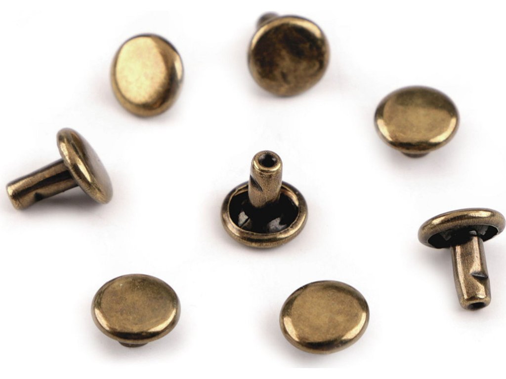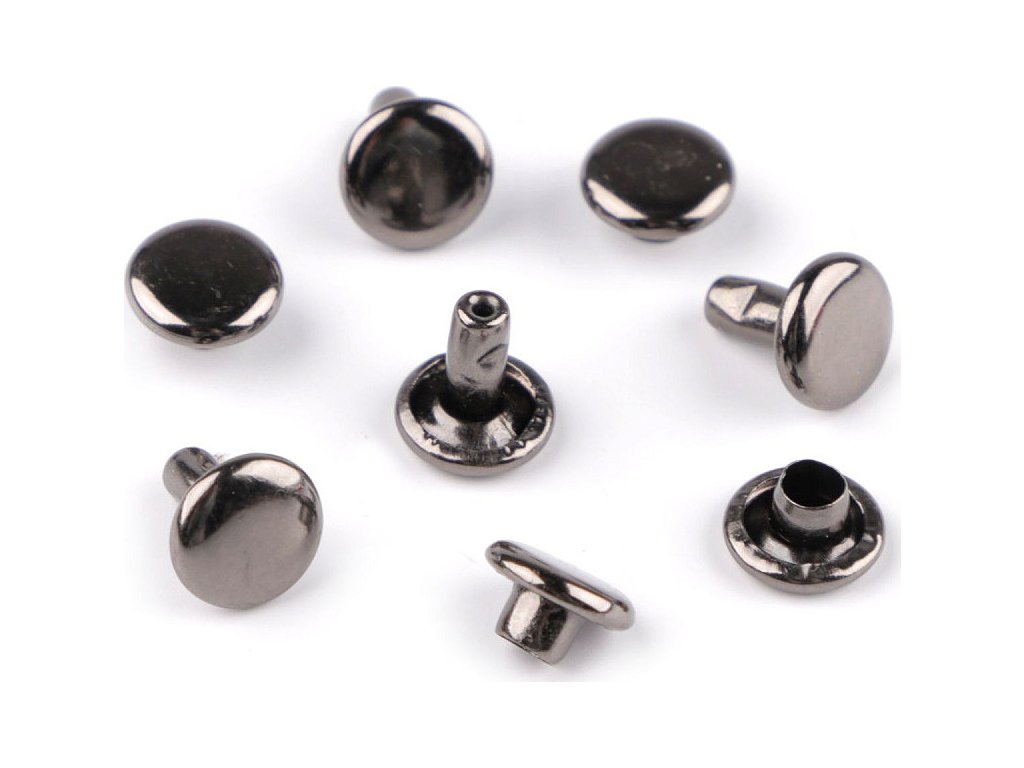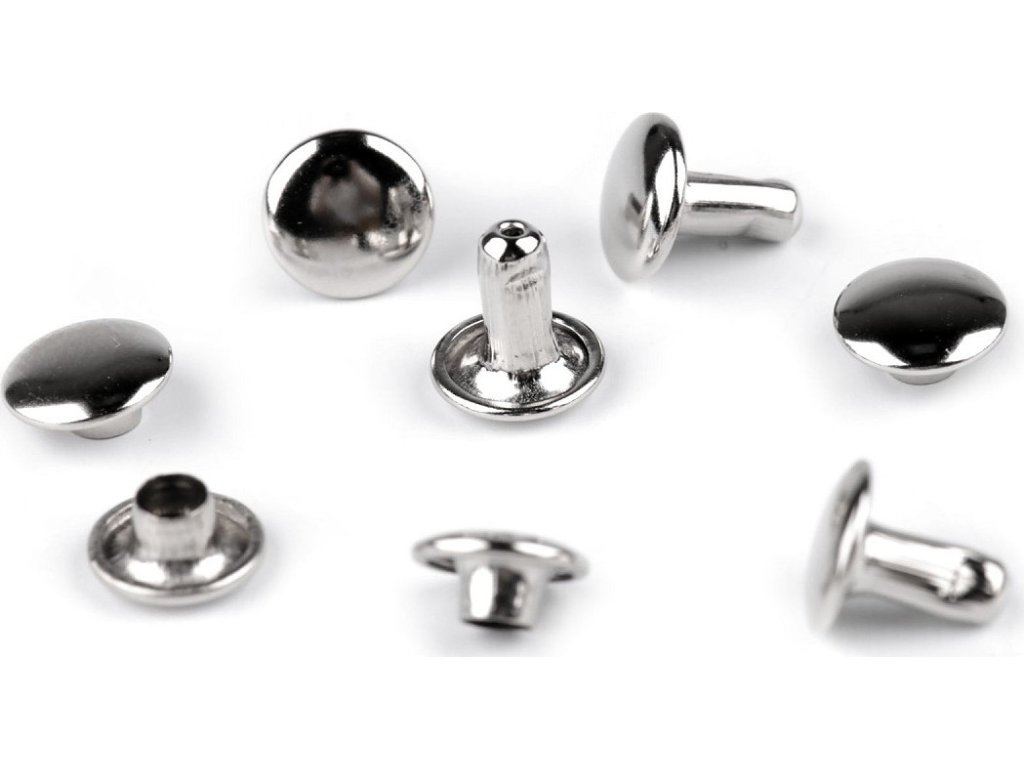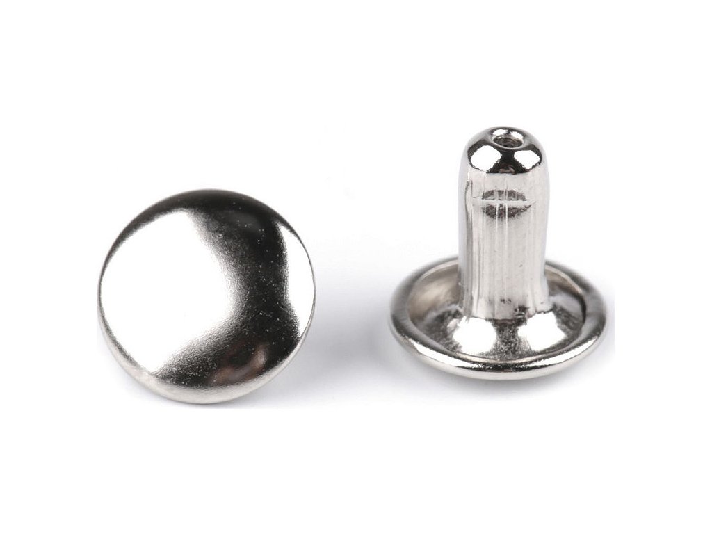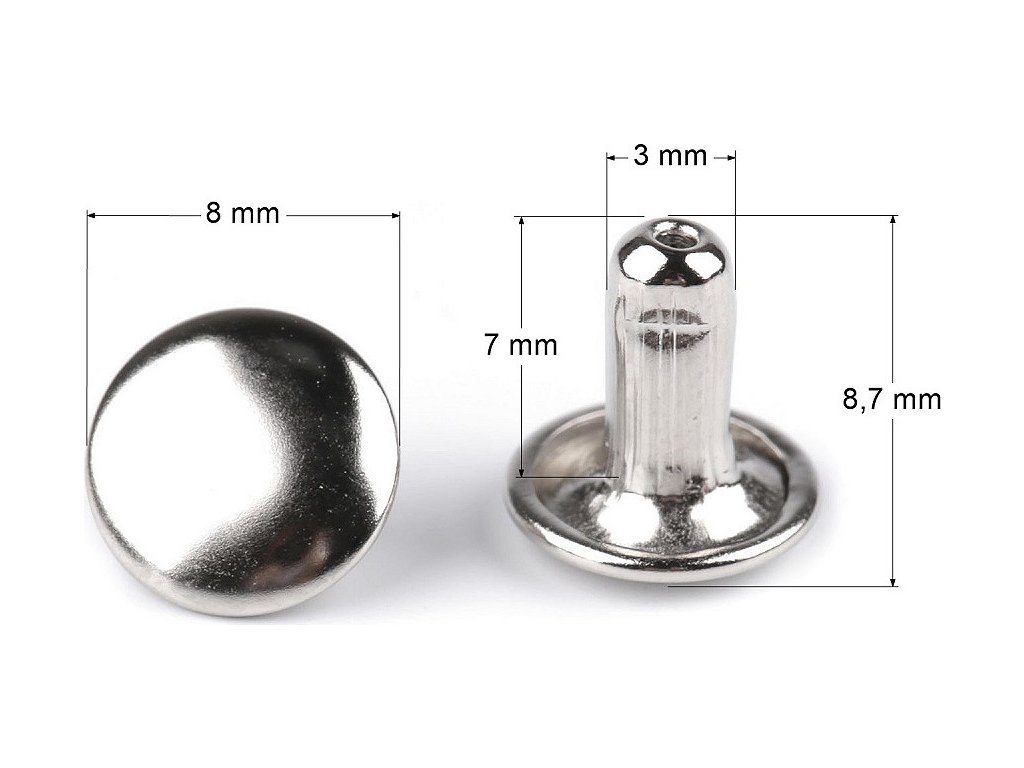 Oboustranný kovový nýt se skládá ze dvou částí. K jeho aplikaci je potřeba piston a lis, který najdete pod kódem 070241 nebo 790770. Nýty využijete k výrobě kabelek, opasků, peněženek, náramků atd. Neslouží pouze jako ozdoba, ale jedná se o nýty, kterými můžete upevnit vrstvy materiálu k sobě. Průměr hrotu nýtu je 3 mm.