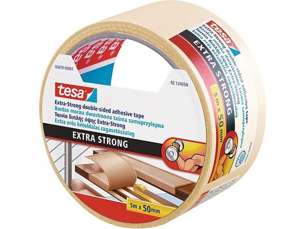 Páska tesa® Extra STRONG Permanent, oboustranně lepící, fóliová, bílá, 50 mm, L-5 m