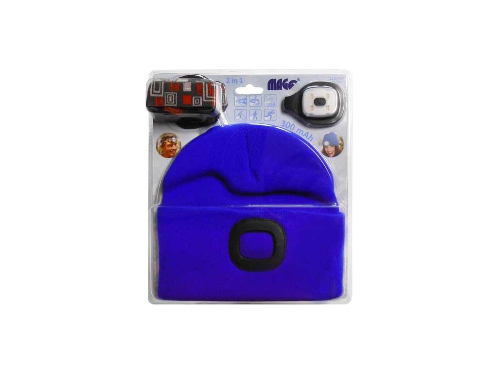 MAGG čepice s čelovkou 45lm, nabíjecí, USB, modrá, univerzální velikost