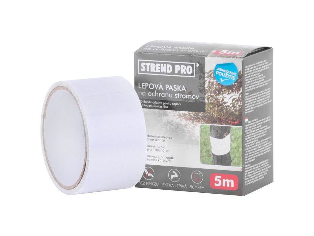 Lepová páska Strend Pro je určena k použití na stromy a slouží k ochraně proti škůdcům. Šířka pásky je 5 cm, délka pásky je 5 metrů.