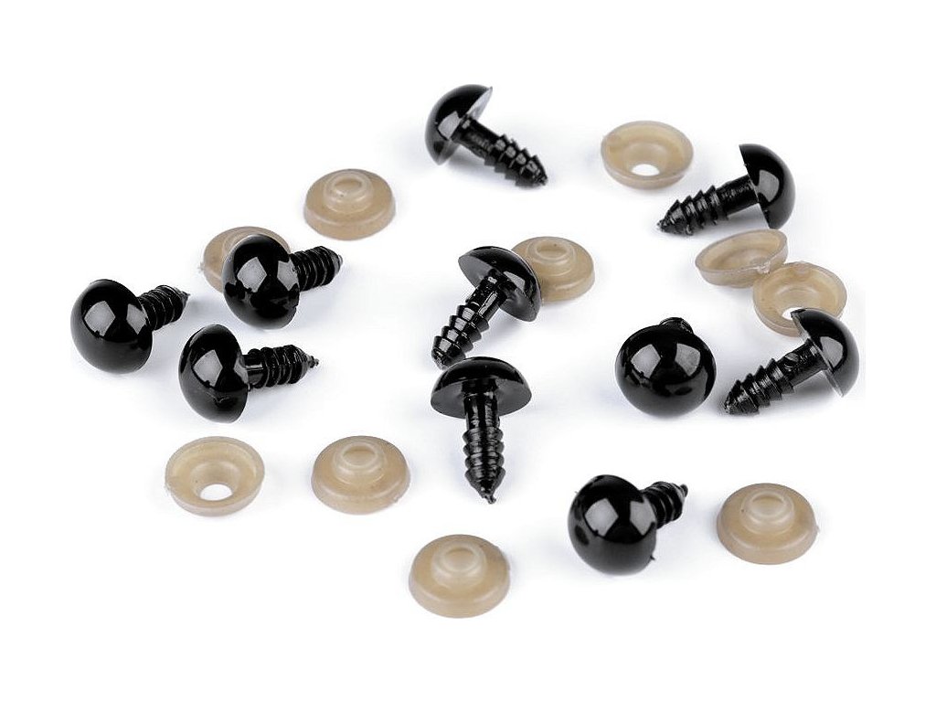 Polokulatá plastová očka využijete při tvorbě plyšových, háčkovaných, či jiným způsobem vyrobených postaviček nebo zvířátek. Očička mají vrut se závitem, na který se přicvakne pojistka, čímž se očička bezpečně připevní na místo. 1 sada = 1 očičko + 1 pojistka Délka vrutu je 1,4 cm. Nevhodné pro děti do 3 let z důvodu nebezpečí spolknutí.