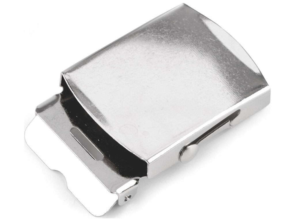 Lesklou kovovou sponu využijete na výrobu popruhových (látkových) opasků. Spona má na jedné straně zoubky, které popruh dobře zafixují a přidrží, takže materiál nebude prokluzovat. Je vhodná pro všechny klasické popruhy s tloušťkou do 4 mm.