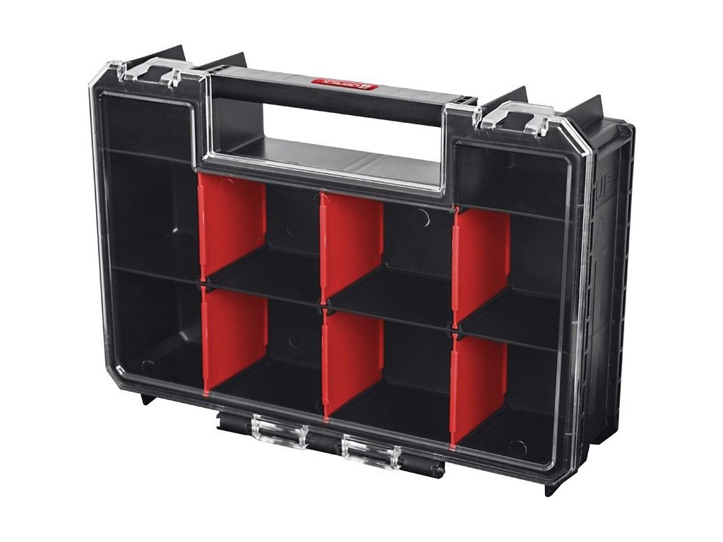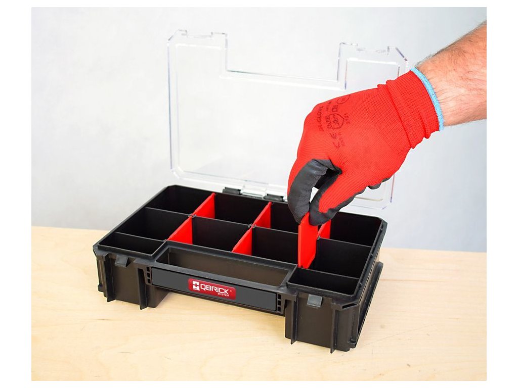 Organizer Multi je prirodzený doplnok pre Toolbox a Box 200 - vďaka špeciálnym držiakom môže každý z týchto modulov umiestniť 4 až 6 multi organizérov. Polykarbonátový kryt, nastaviteľné prepážky a pohodlná rukoväť zaisťujú vysokú odolnosť a ergonómiu pri práci.