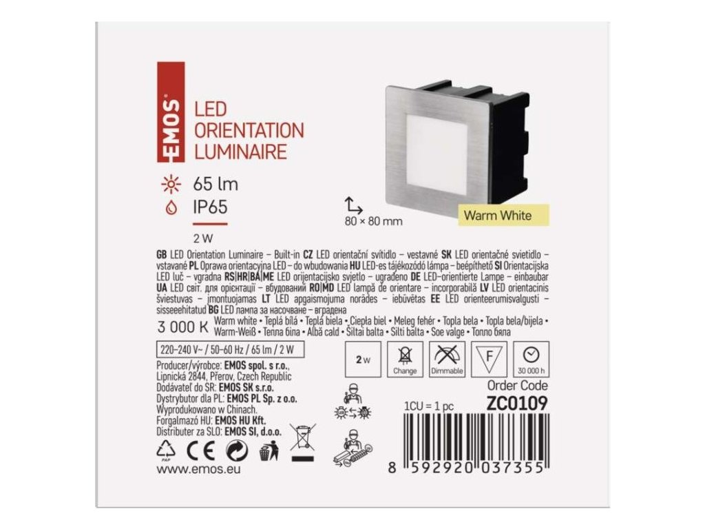 LED orientační vestavné svítidlo AMAL 80×80, 2W teplá bílá,IP65