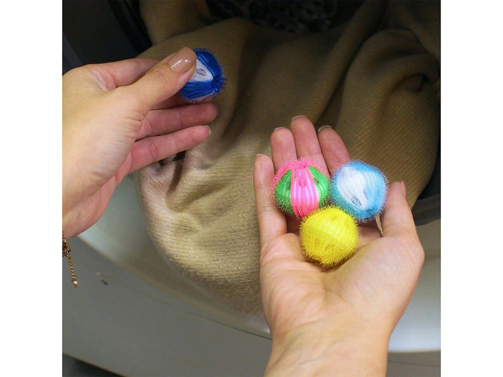 Sada opakovaně použitelných kuliček do pračky s povrchem z jemných nylonových vláken pomůže efektivním a jednoduchým způsobem zbavit se vlasů a srsti z vašeho oblíbeného oblečení. Kuličky stačí před praním vložit do bubnu pračky a speciální povrch koulí zachytí veškeré obtížné nečistoty. Výsledkem je čistší a upravenější prádlo, méně čištění filtru pračky a výrazná úspora času i práce s odstraňováním chlupů po praní. Sada obsahuje 4 kuličky.