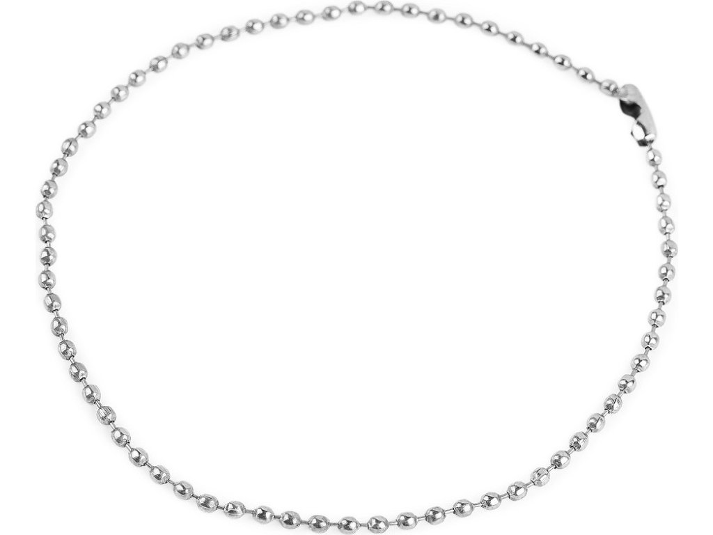 Kuličkový řetízek využijete k připevnění přívěsků na kabelky, tašky či jako poutko na kabáty, mikiny, bundy apod. Je vhodný také jako visačka na oděvy tam, kde nelze použít špendlík kvůli poškození oděvu. Řetízek připevníte jednoduše zaháknutím kuličky do očka. Kuličky mají průměr 2 mm.