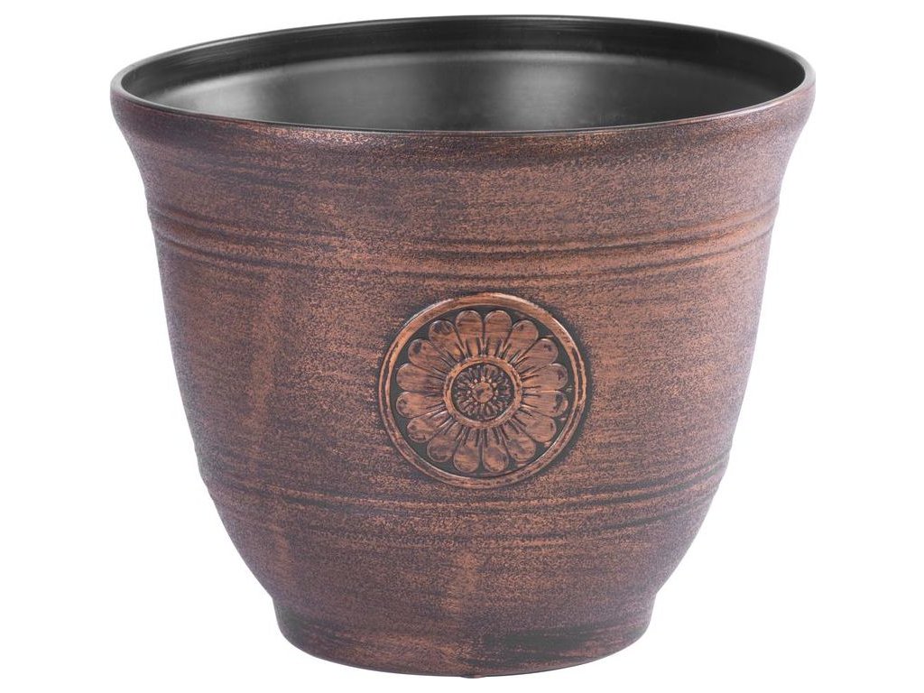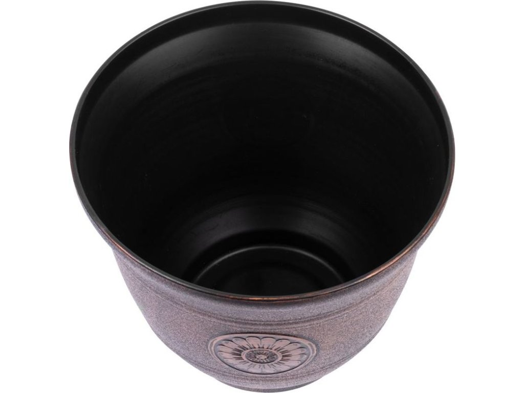 Designový květináč s efektem kovu je skvělou volbou pro jakoukoli zahradu, terasu, nebo balkon. UV stabilní. Barva: měděná. Jeho rozměry jsou 30x25 cm.