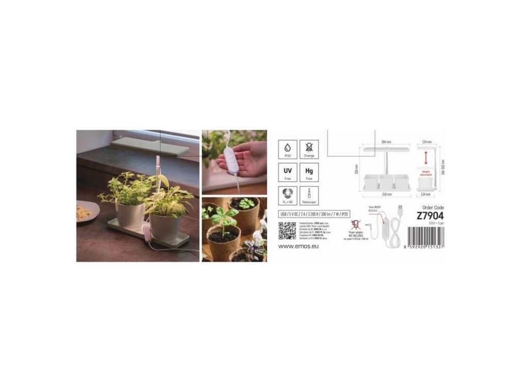 LED GROW pěstební lampa 7 W, časovač, stmívatelná, bílá