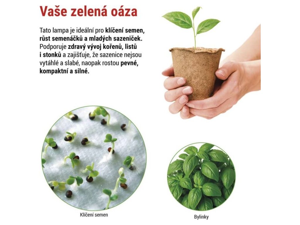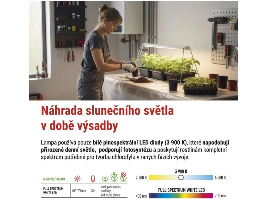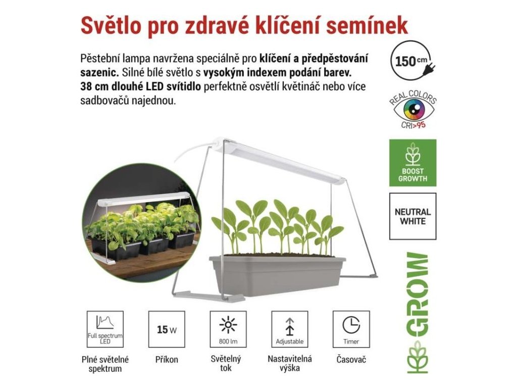 LED GROW pěstební lampa na sazenice 15 W, časovač, bílá